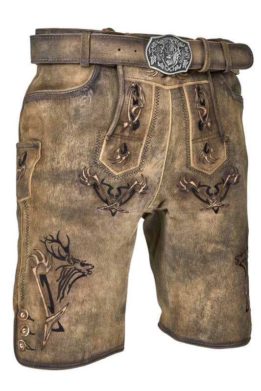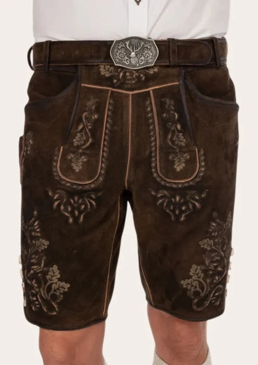 Our online store has three types of lengths: one is short Lederhosen, which is quite well-known, especially included in Oktoberfest outfits for men. They end above the knees and are a classic representation of modern Bavarian tradition. Also, they offer enhanced mobility.