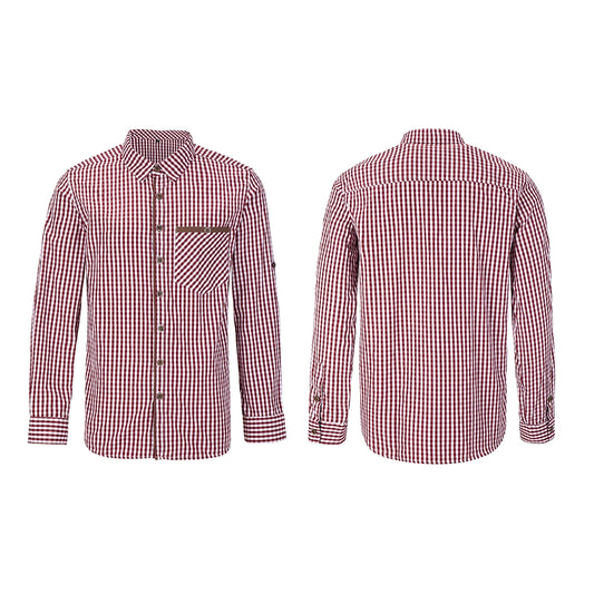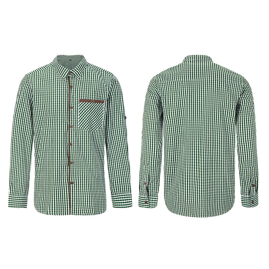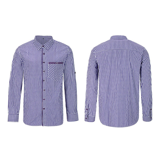 Our elite cultural clothing for men also encompasses Lederhosen shirts, which are mostly made of cotton for enhanced comfort and breathability. In terms of their appearance, they are found in solid-colored, like white, or in check patterned versions, with hues like blue, green, red and white.