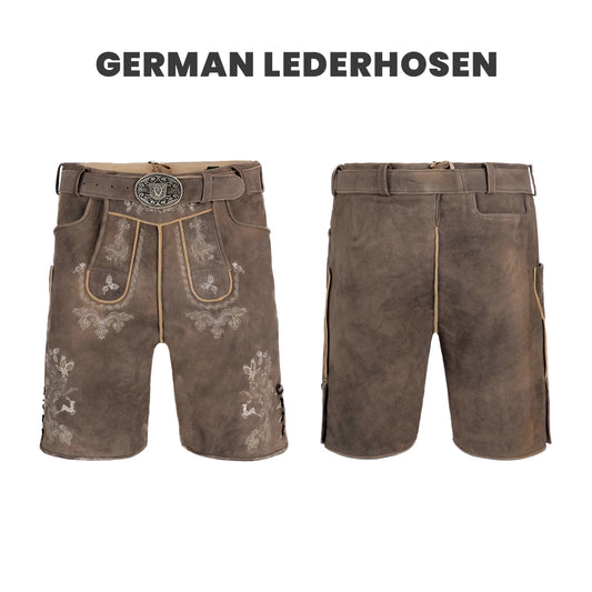 Traditional Lederhosen are leather shorts that are worn by people in Alpine regions. These garments originated as workwear as the wearers required something durable, practical and resistant to weather. Today, they are more about cultural connection and have become a prominent part of traditional German outfits. They are undoubtedly classic, and our team's craftsmanship has put forth its own creative efforts to form modern yet culturally accurate Lederhosen for men.