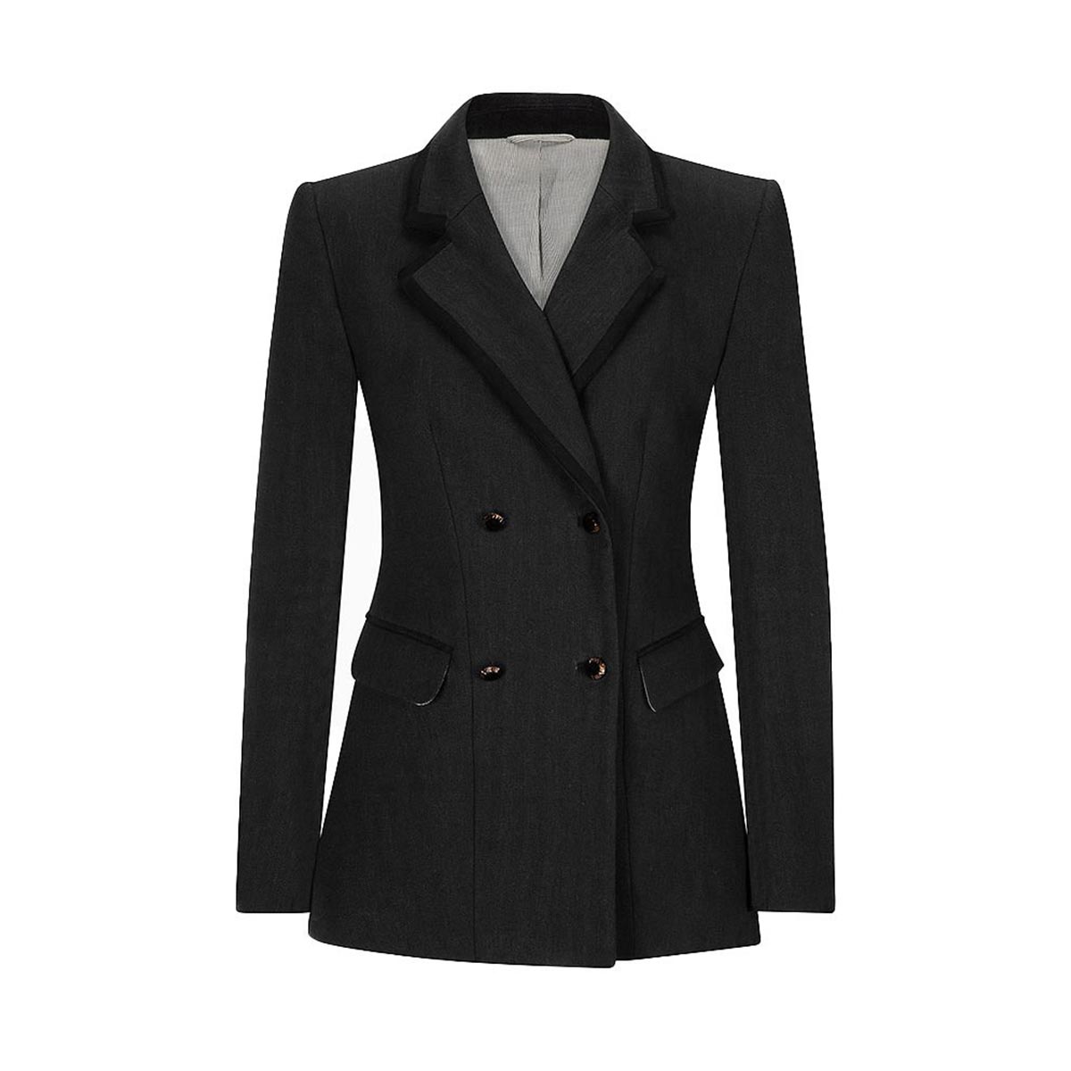 Style & Design: Fitted with a textured look and golden buttons.