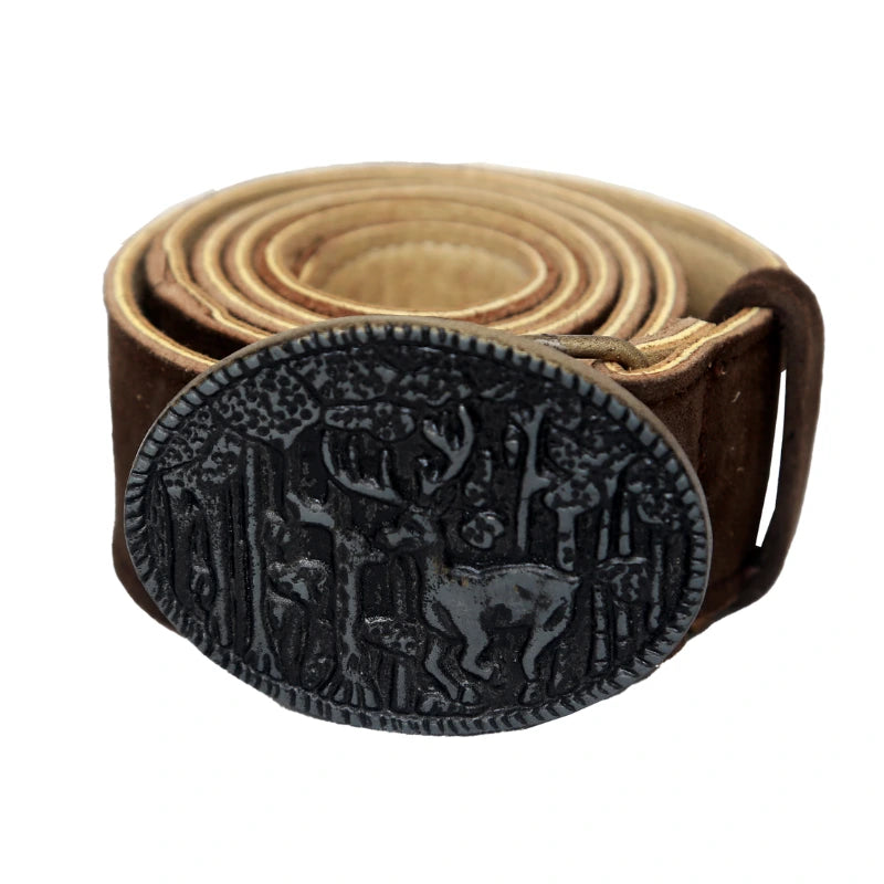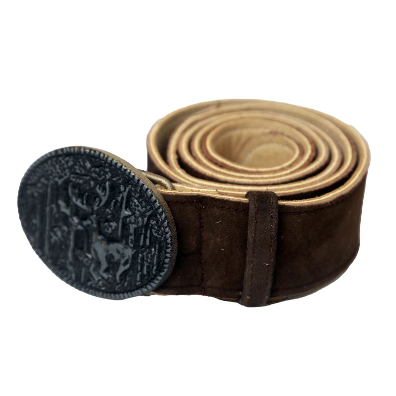 ✔ Details: Classic dark brown Bavarian belt, with suede and a sturdy buckle.