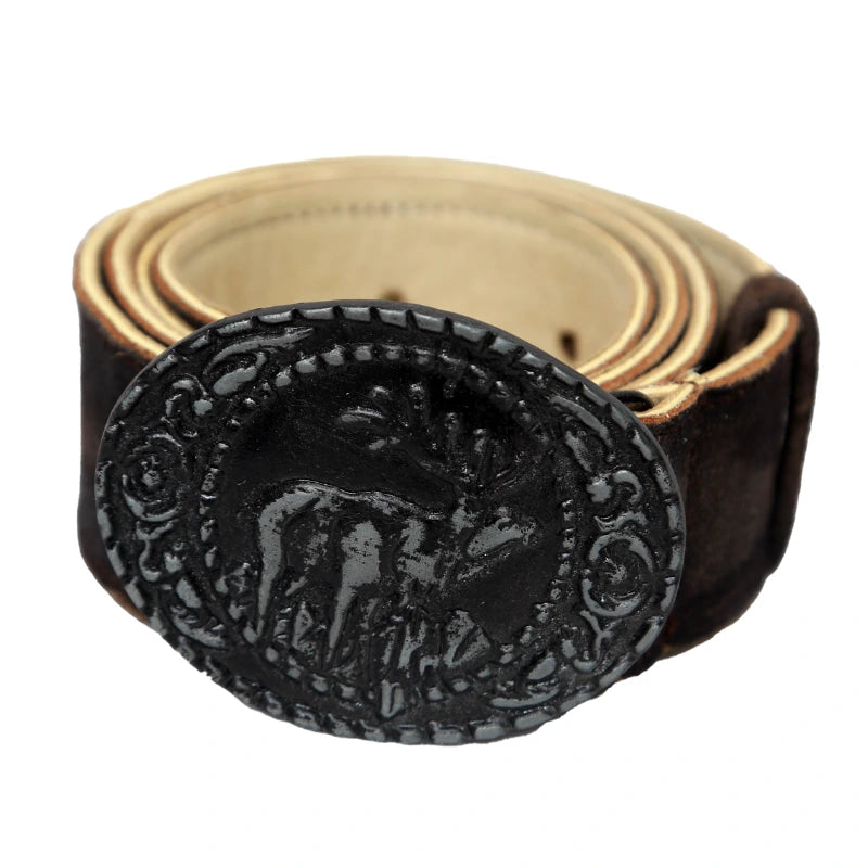 ✔ Details: Classic Lederhosen dark brown belt with Bavarian style buckle.