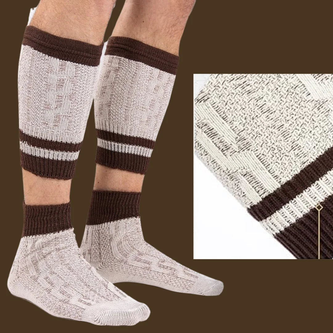 These two-piece socks are admired by many buyers and are the perfect sets to wear to various occasions, including Oktoberfest and weddings. They are the true representation of authentic traditional style and provide insulation, suitable for outdoor activities during winter. Our Trachten socks are visually beautiful too, with distinctive patterns. Also, you can pair them with Haferl shoes, lederhosen or Trachten shirts to complement your cultural style.