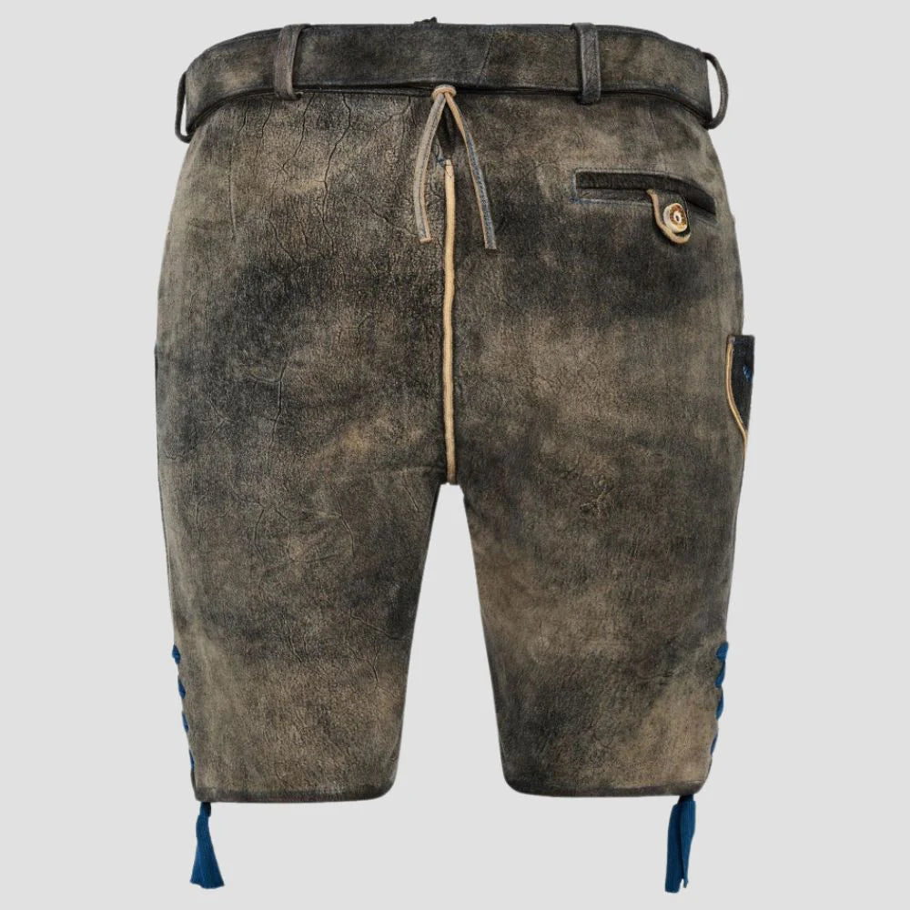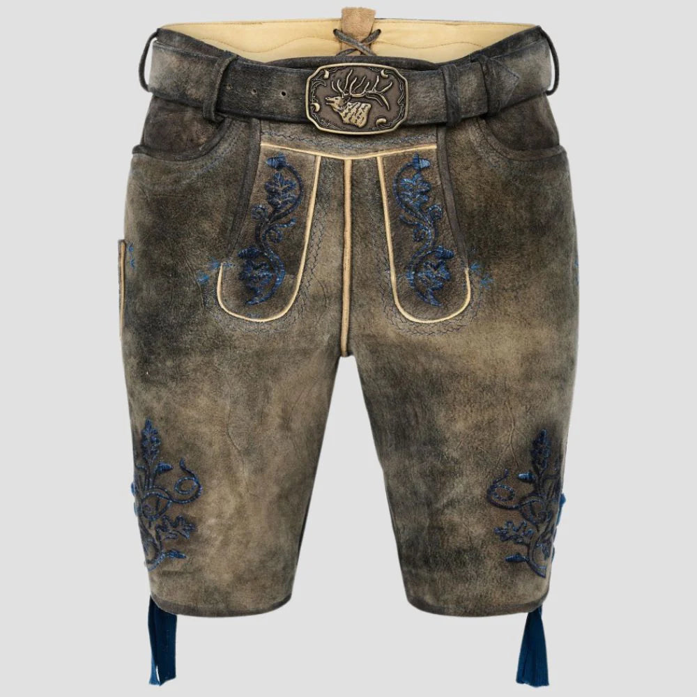 Here are the components of men's lederhosen shorts, exemplifying their unique adornments.