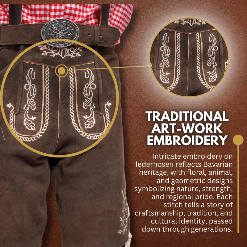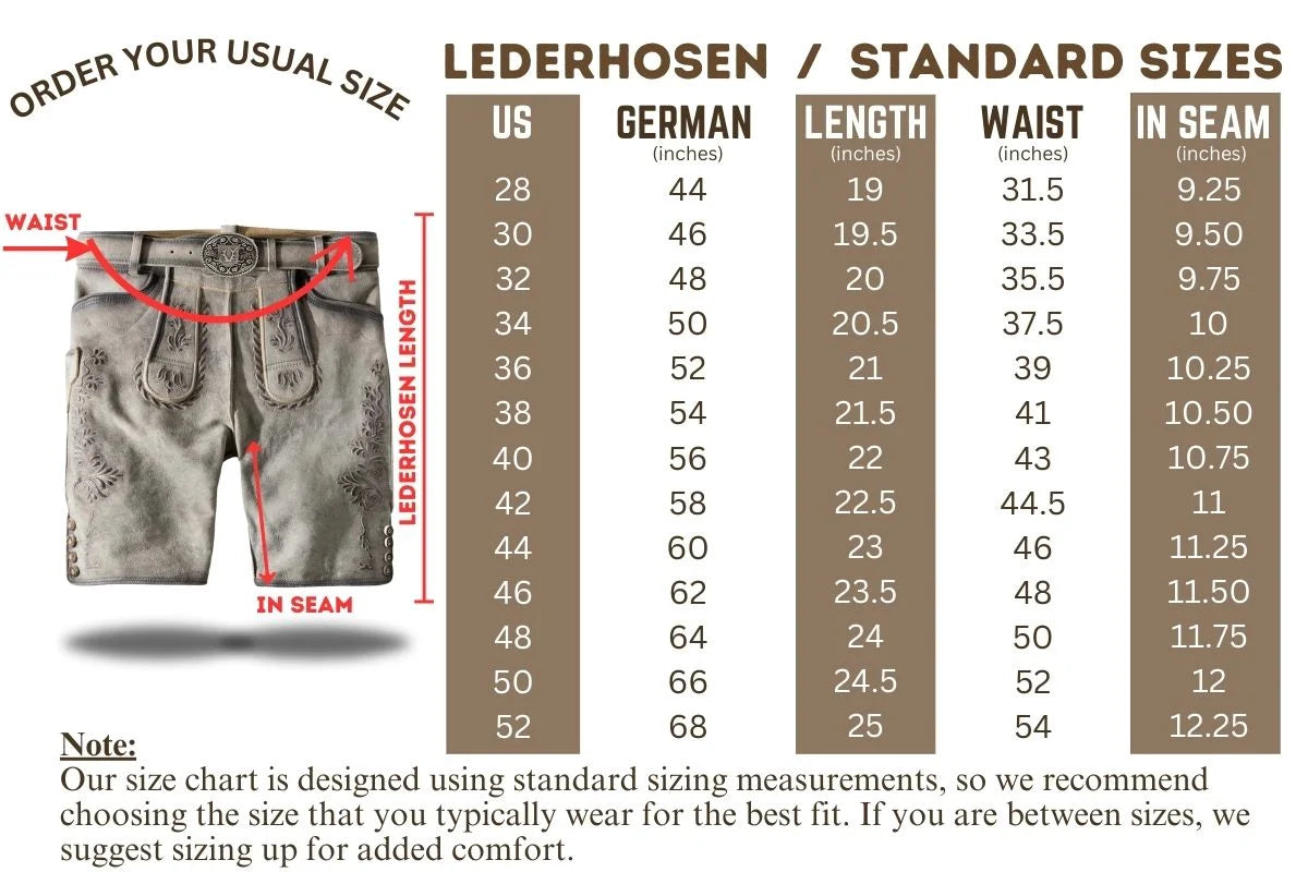 When it comes to our Bavarian shorts, we guarantee providing the materials that have exceptional quality. As we are discussing lederhosen, we have numerous high-value kinds, including cowhide, which is amazingly durable, versatile and comprises distinctive patterns. Moreover, our goatskin leather has flexibility and a silky texture with water resistance attributes. The third elite leather we have for these lederhosen shorts is deerskin, which is soft and breathable. We assure you will see no flaws. Hence, shop online today!
