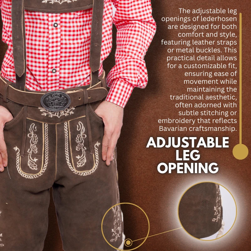 The width of the bottom of the lederhosen leg offers comfort as it is adjustable.