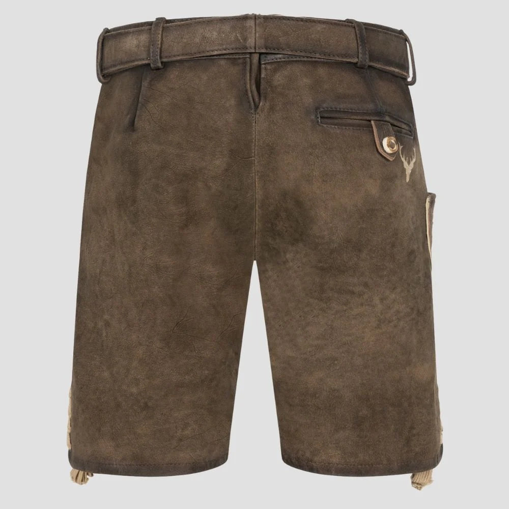 Here are the components of men's lederhosen shorts, exemplifying their unique adornments.
